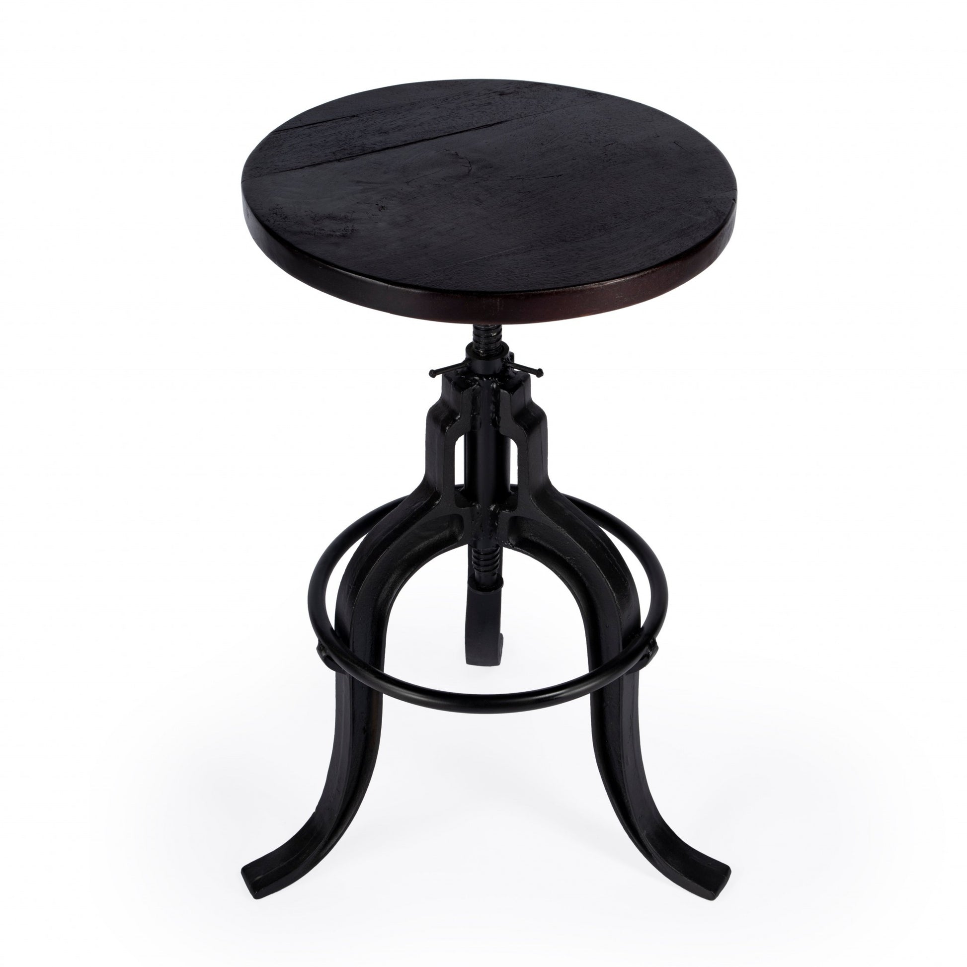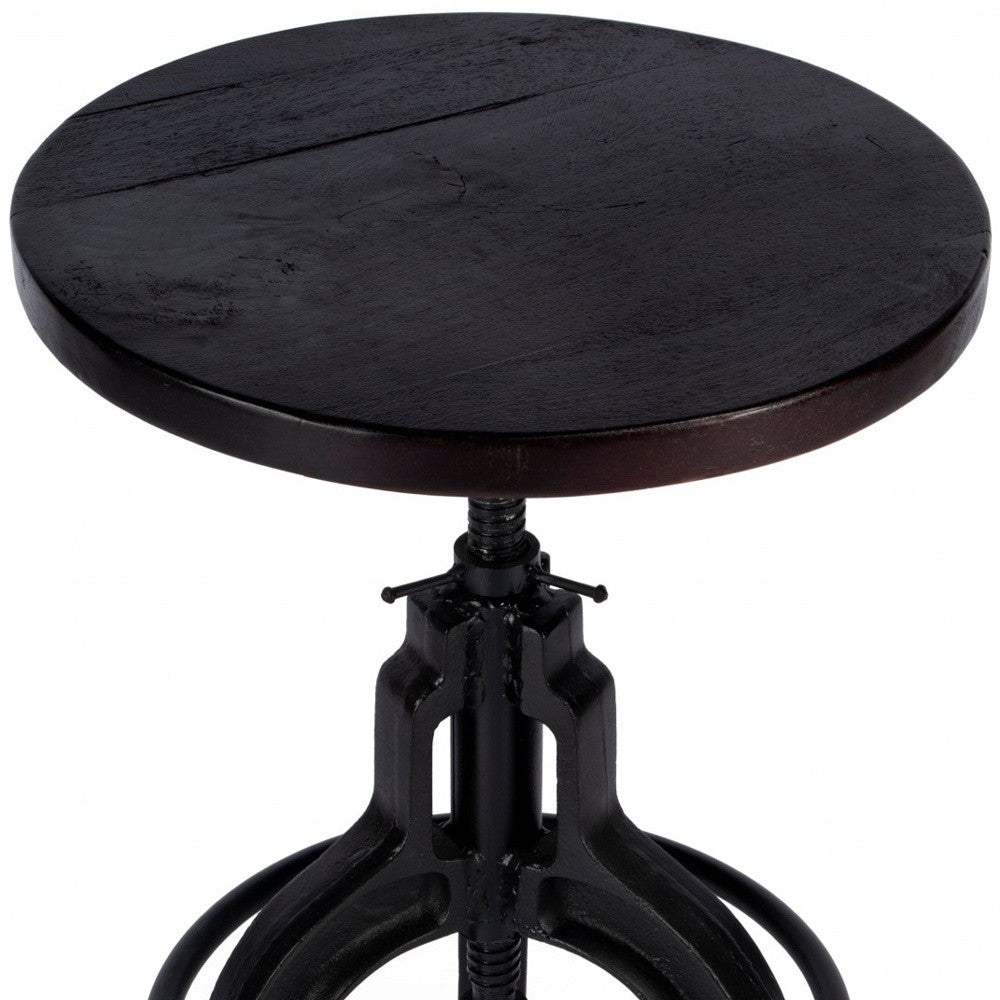 28" Brown and Black Manufactured Wood and Iron Backless Swivel Bar Chair