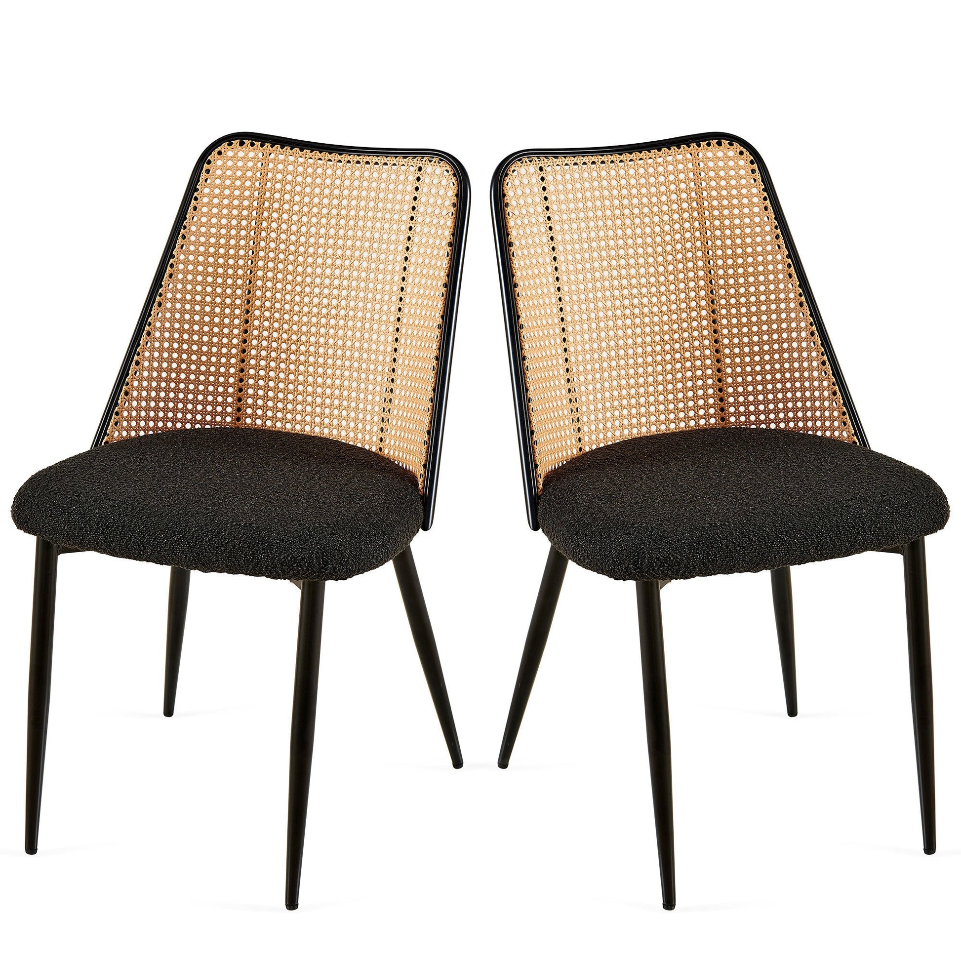 - Experience ultimate comfort with our Black Rattan Dining Chairs, featuring a hand-woven, natural open-weave design and a rattan back that promotes excellent airflow.